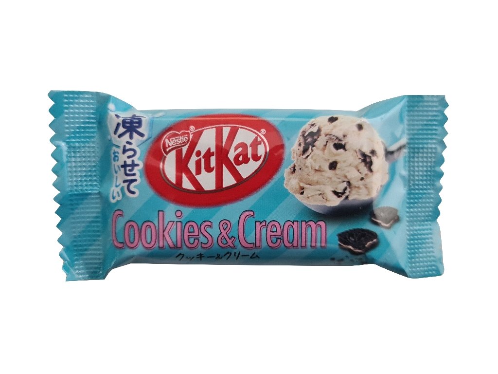 KitKat Cookies & Creme je jednou z nejoblíbenějších japonských svačinek na světě. Tato varianta je k dostání pouze po omezenou dobu během léta. Sladká chuť sušenek a smetany, která vytvářející lehce nakyslou chuť smíchanou s lahodnou čokoládou na křupavé oplatce.