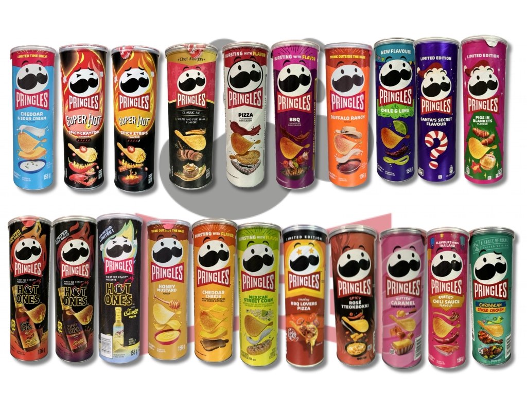 V mixu najdete 21 balení plných originálních chutí, které potěší každého fanouška Pringles i sběratele limitovaných edic. Ideální dárek, ochutnávkový set i zásoba pro chvíle, kdy chcete něco opravdu výjimečného. Objevte chuťový svět Pringles v jednom balíčku! 🥔✨