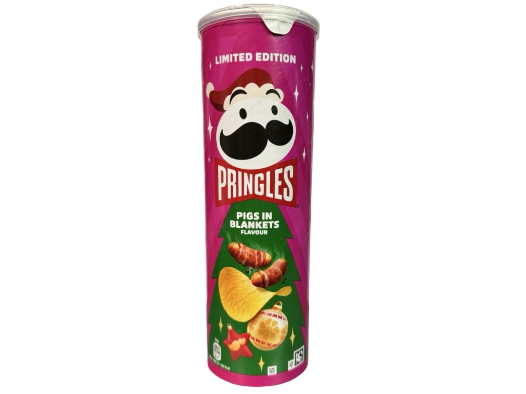 Pringles Pigs In Blankets jsou vánoční limitovaná edice od Pringles, inspirovaná ikonickou britskou vánoční klasikou. Kombinují chuť slaného párku, jemně zauzené slaniny a kořeněného dochucení, které dohromady vytváří dokonale výrazný a návykový snack 🎄🥓