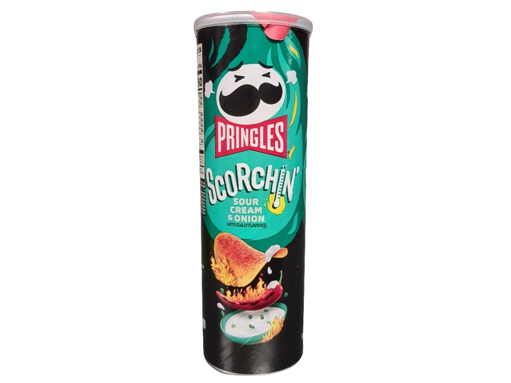 Pringles Scorchin Sour Cream And Onion nabízí dokonalou rovnováhu chuti a pálivosti. Kombinace pikantní zakysané smetany s cibulí a pikantní pálivosti.