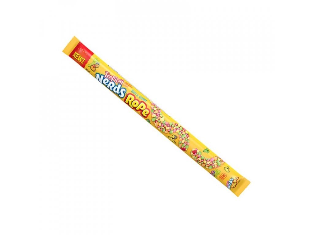 Oblíbené sladké a křupavé kuličky Nerds z Wonkovi továrny. Měkký proužek obalený tvrdými Nerds bonbónky s příchutí tropického ovoce, to je Wonka Nerds Rope Tropical.